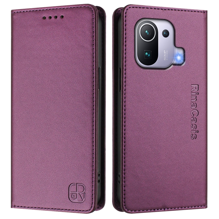 Funda de Cuero con Doble Pliegue y Succión Magnética para Teléfono Xiaomi Mi 11 Pro Rc01 (Violeta)