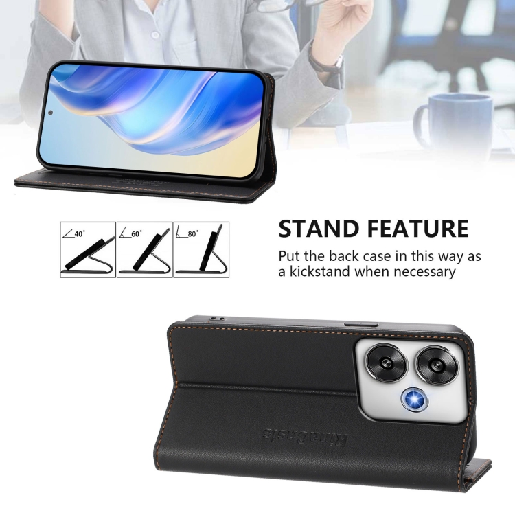 Funda de Cuero con Doble Pliegue y Succión Magnética para Teléfono Xiaomi Poco F6 5G Rc01 (Negro)