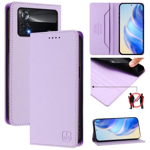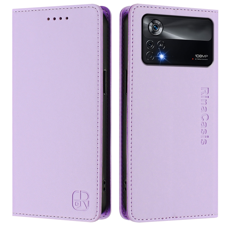 Funda de Cuero con Doble Pliegue y Succión Magnética para Teléfono Xiaomi Poco X4 Pro 5G Rc01 (Morado Claro)