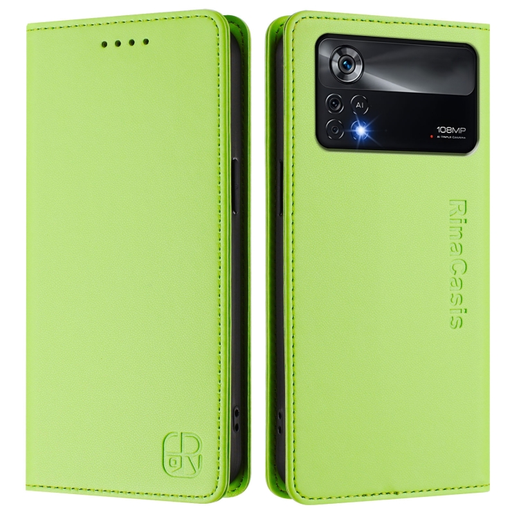 Funda de Cuero con Doble Pliegue y Succión Magnética para Teléfono Xiaomi Poco X4 Pro 5G Rc01 (Verde Hierba)