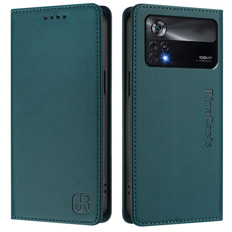 Funda de Cuero con Doble Pliegue y Succión Magnética para Teléfono Xiaomi Poco X4 Pro 5G Rc01 (Verde Oscuro)