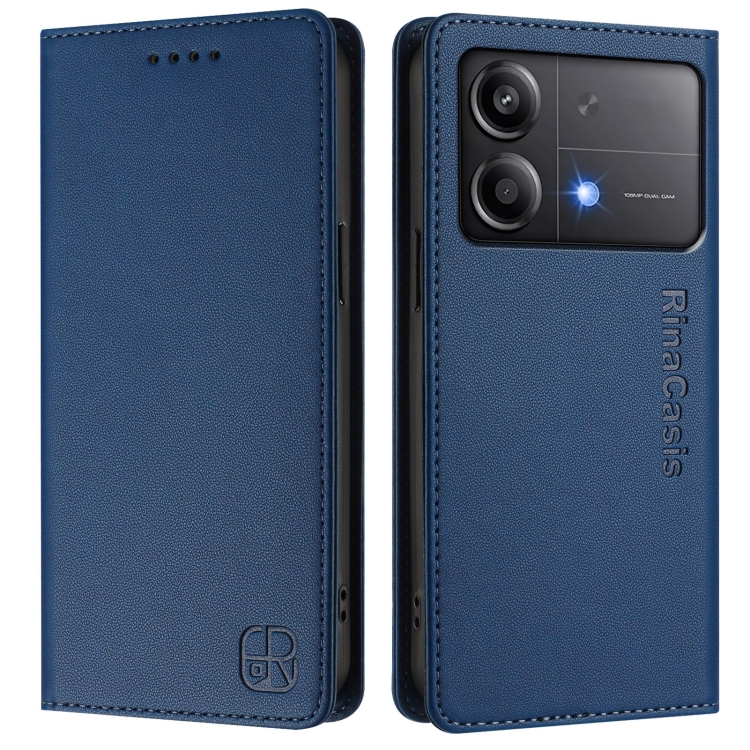 Funda de Cuero con Doble Pliegue y Succión Magnética para Teléfono Xiaomi Poco X6 Neo 5G Rc01 (Azul Oscuro)