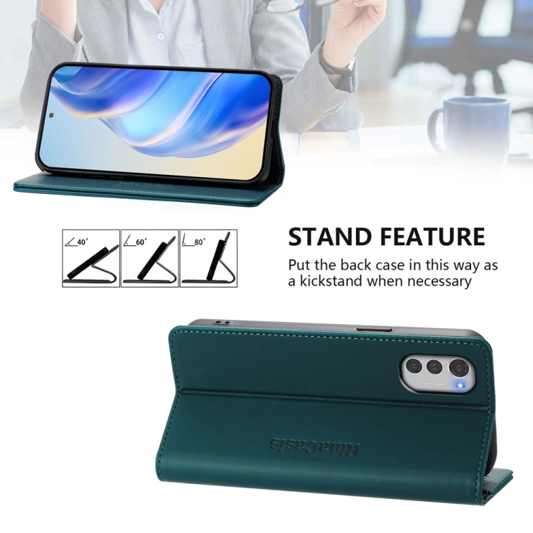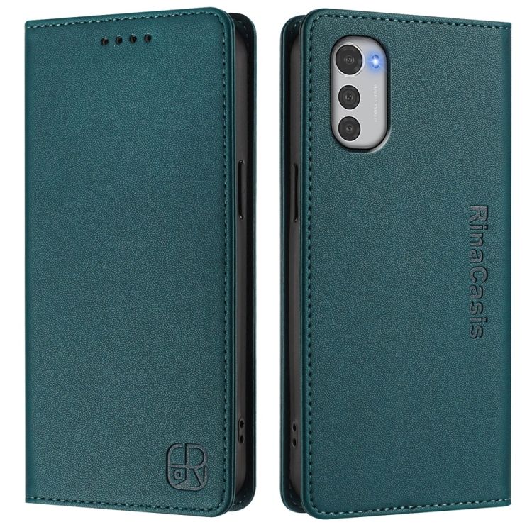 Funda de Cuero Motorola Moto E32 Global Rc01 con Doble Pliegue y Succión Magnética Rfid (Verde Oscuro)