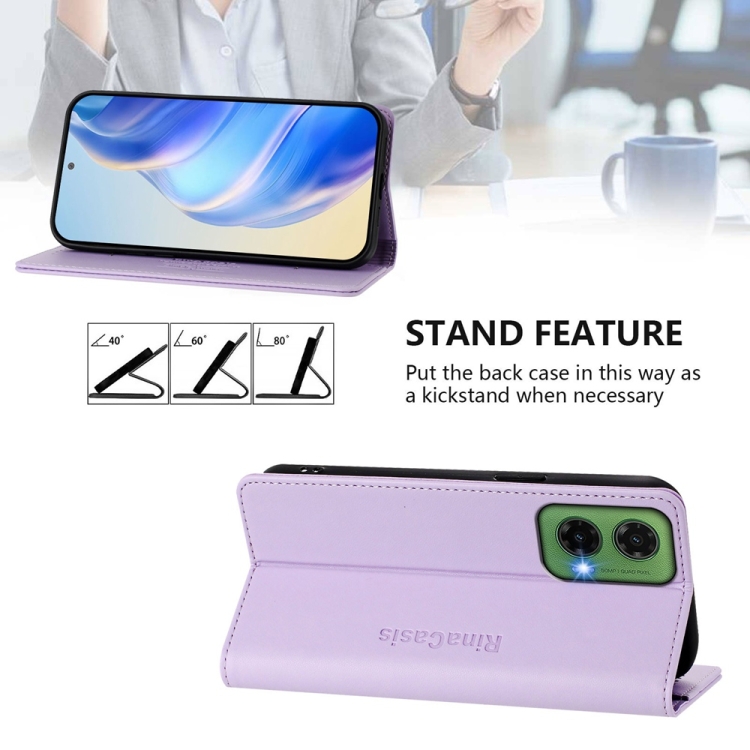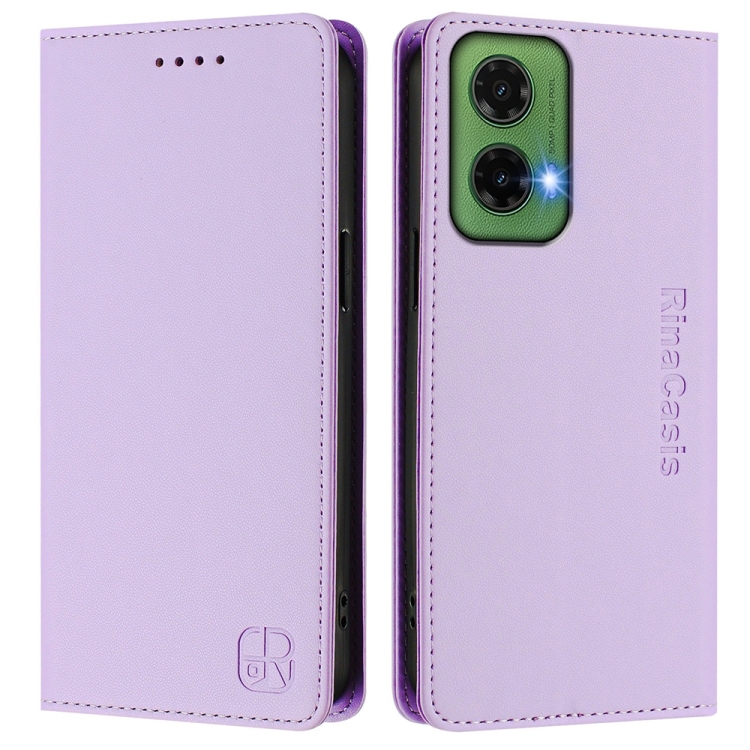 Funda de Cuero con Doble Pliegue y Succión Magnética RFID para Motorola Moto G35 Rc01 (Morado Claro)