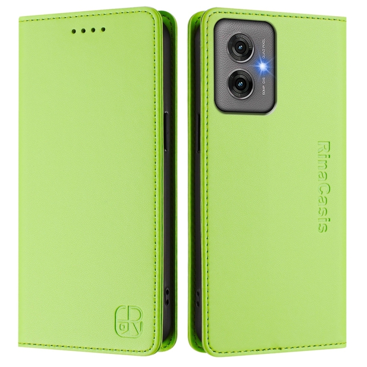 Funda de Cuero para Motorola Moto G55 Rc01 con Doble Pliegue y Succión Magnética Rfid (Verde Hierba)