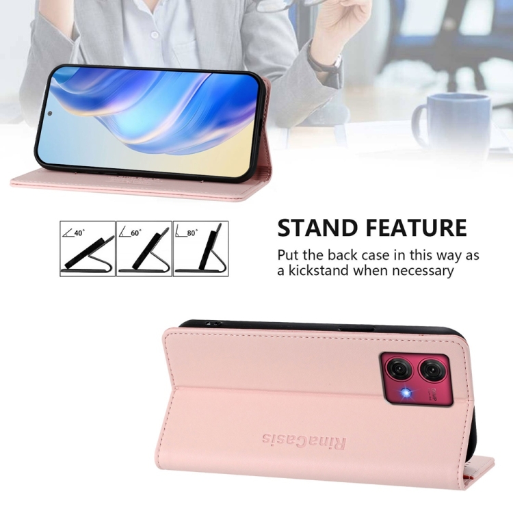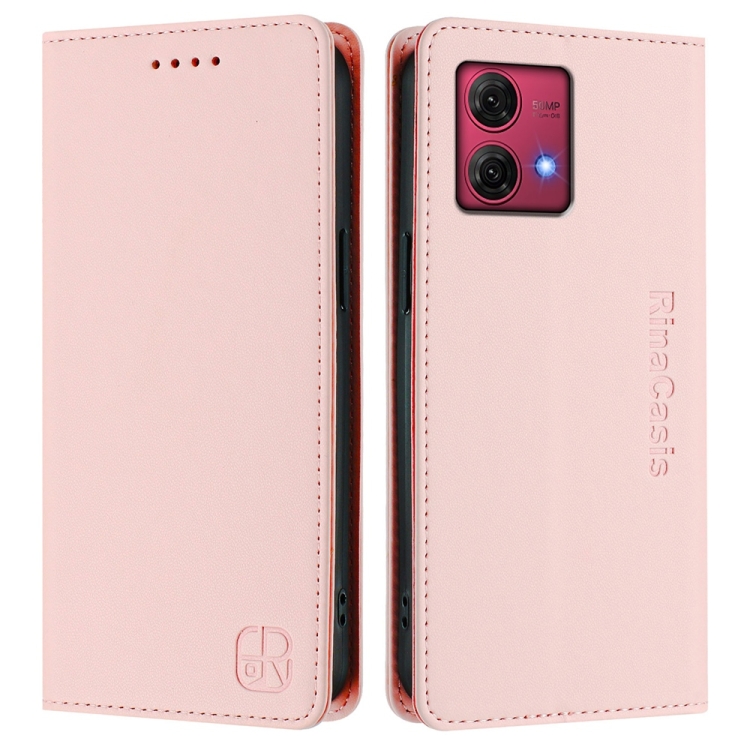 Funda de Cuero con Doble Pliegue y Succión Magnética RFID para Motorola Moto G84 Rc01 (Rosa)