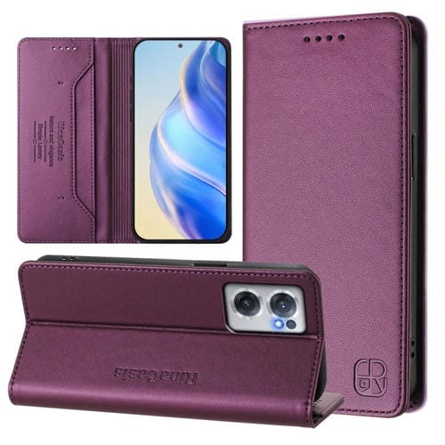 Funda de Cuero con Doble Pliegue y Succión Magnética RFID para OnePlus Nord CE 2 5G RC01 (Violeta)