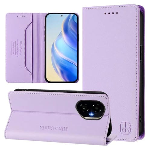 Funda de Cuero Rfid con Doble Pliegue y Succión Magnética para Honor 300 Rc01 (Morado Claro)