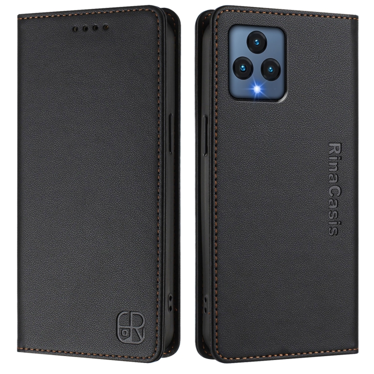 Funda de Cuero T-Mobile Revvl 6 5G 6X 5G Rc01 con Doble Pliegue y Succión Magnética Rfid (Negro)