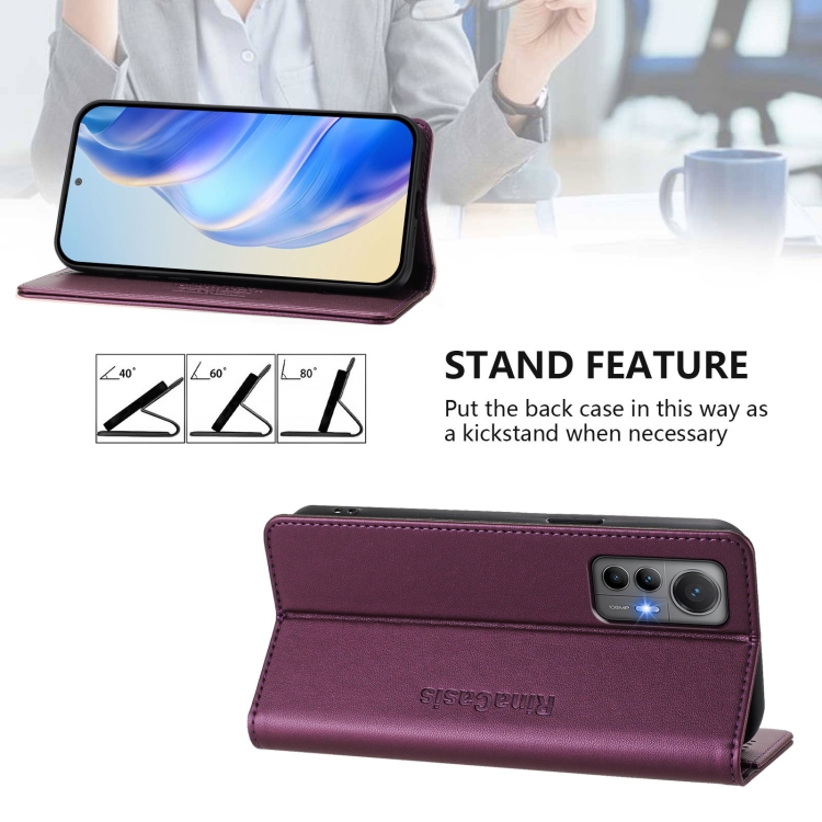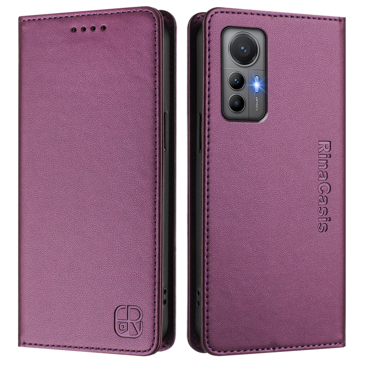 Funda de Cuero con Doble Pliegue y Succión Magnética Rfid para Xiaomi 12 Lite Rc01 (Violeta)