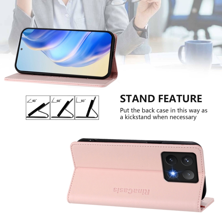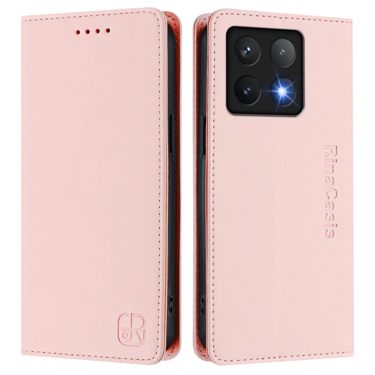 Funda De Cuero Con Doble Pliegue Y Succión Magnética Rfid Para Xiaomi 14T Rc01 (Rosa)