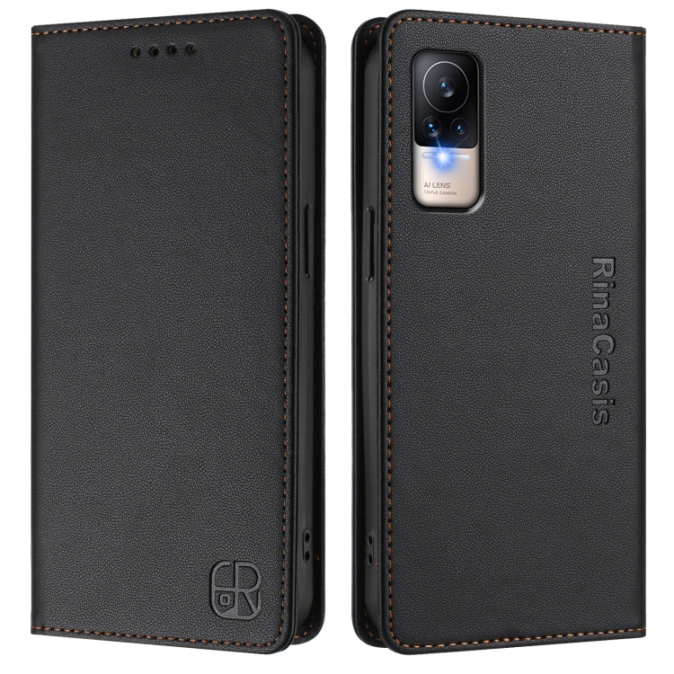 Funda de Cuero con Doble Pliegue y Succión Magnética Rfid para Xiaomi Civi 1S Rc01 (Negra)