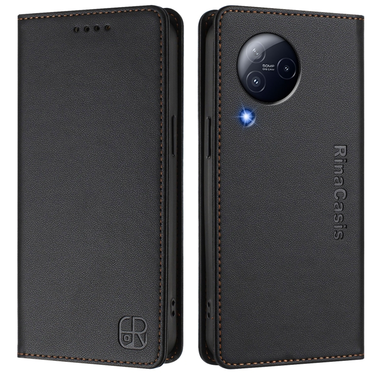 Funda de Cuero con Doble Pliegue y Succión Magnética Rfid para Xiaomi Civi 3 5G Rc01 (Negra)