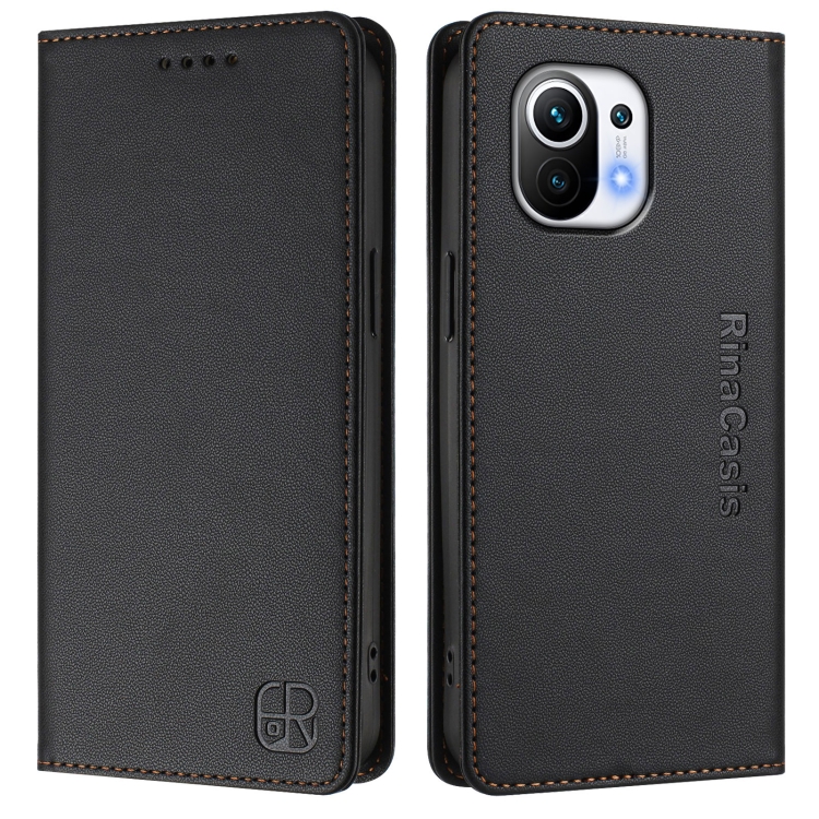 Funda de Cuero con Doble Pliegue y Succión Magnética Rfid para Xiaomi Mi 11 Rc01 (Negra)