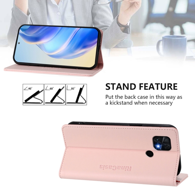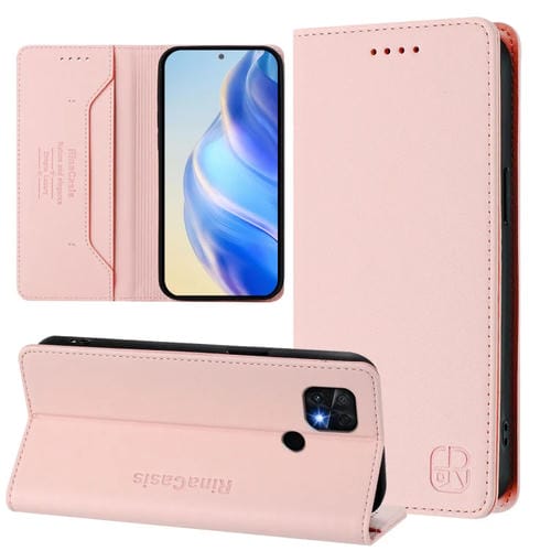 Funda de Cuero con Doble Pliegue y Succión Magnética Rfid para Xiaomi Poco C40 Rc01 (Rosa)