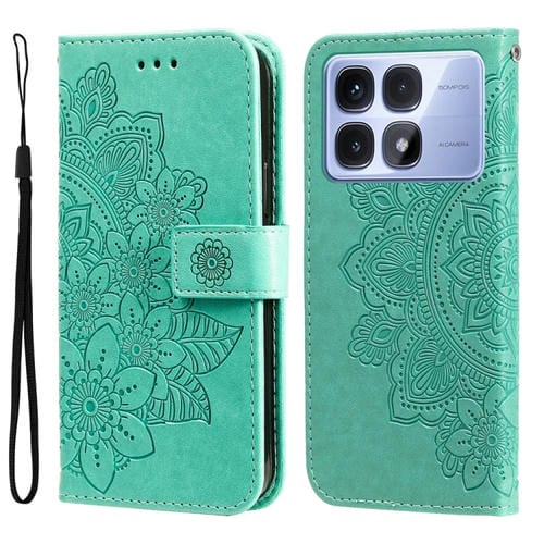 Funda de Cuero con Estampado de Flores de Siete Pétalos para Redmi K70 Ultra (Verde)
