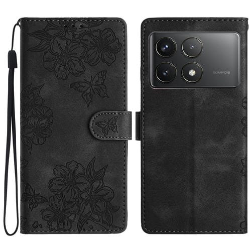 Funda de Cuero con Estampado de Flores y Mariposas para Xiaomi Poco F6 Pro (Negro)