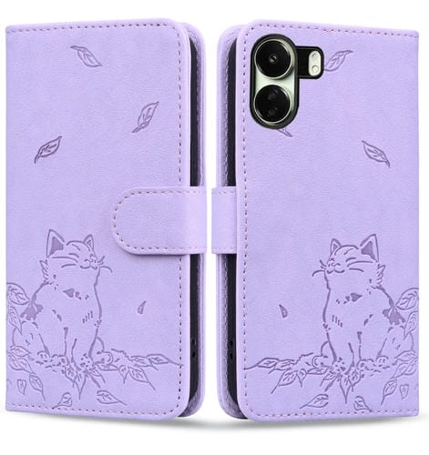Funda de Cuero con Estampado de Gato para Redmi 13C 4G (Morado)