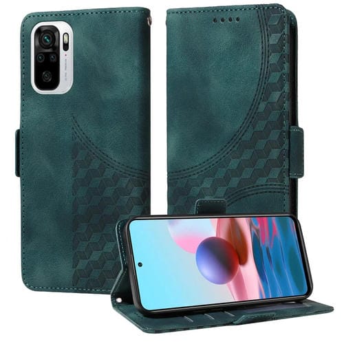 Funda de Cuero con Estampado de Rombos y Estrellas para Redmi Note 10 4G (Verde)
