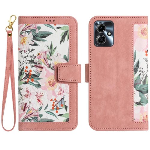 Funda de Cuero con Estampado Floral y Cordón para Motorola Moto G14 (Rosa)