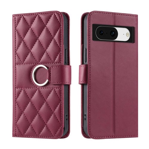Funda de Cuero con Forma de Rombo y Hebilla de Anillo para Google Pixel 8 (Rojo)