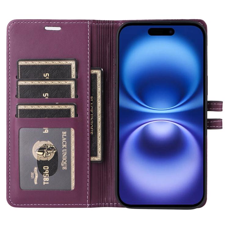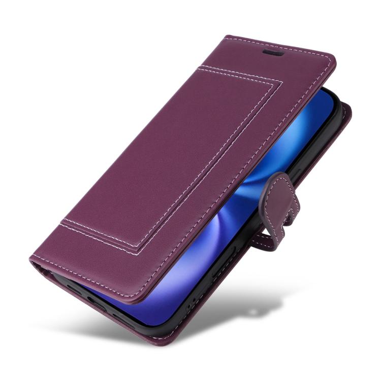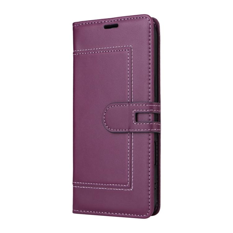 Funda de cuero con hebilla magnética cosida para iPhone 17 (morada)