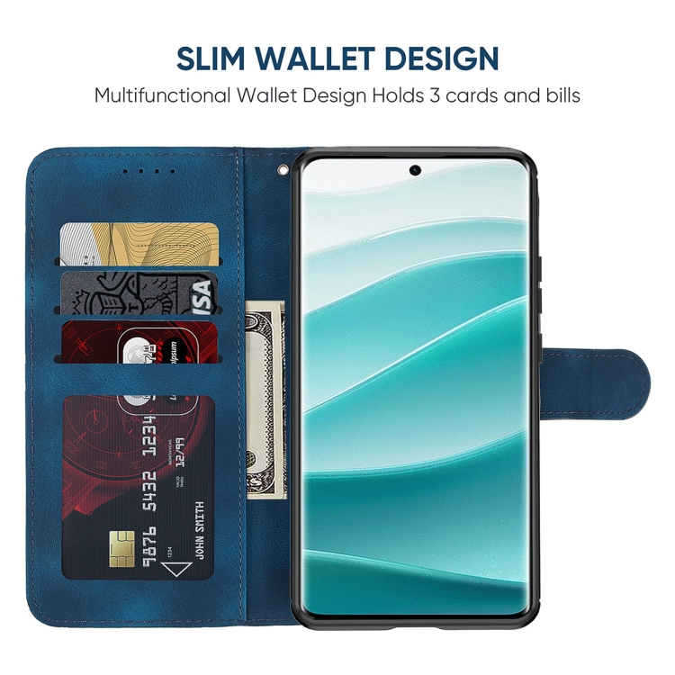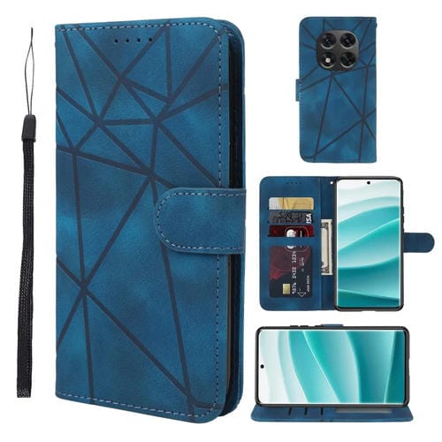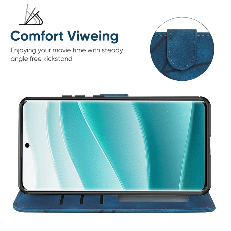 Funda de Cuero con Líneas Geométricas y Tacto de Piel para Redmi Note 14 Pro 5G (Azul)