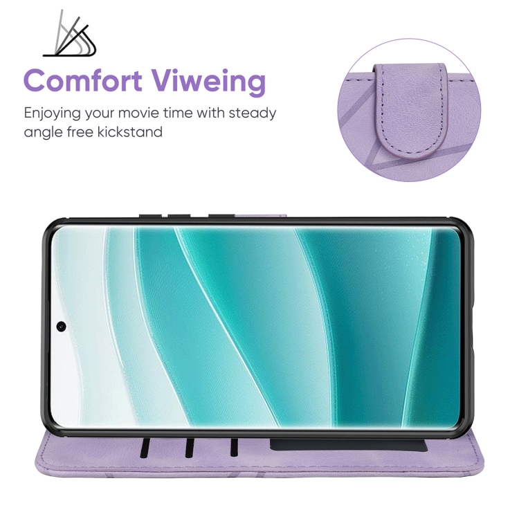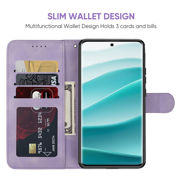 Funda de Cuero con Líneas Geométricas y Tacto de Piel para Redmi Note 14 Pro 5G (Morado)