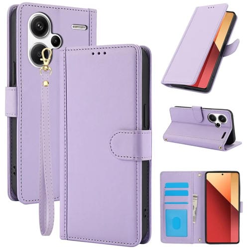 Funda de Cuero con Ranuras para Tarjetas y Tacto de Piel Global para Redmi Note 13 Pro+ 5G con Cordón Doble (Morado)