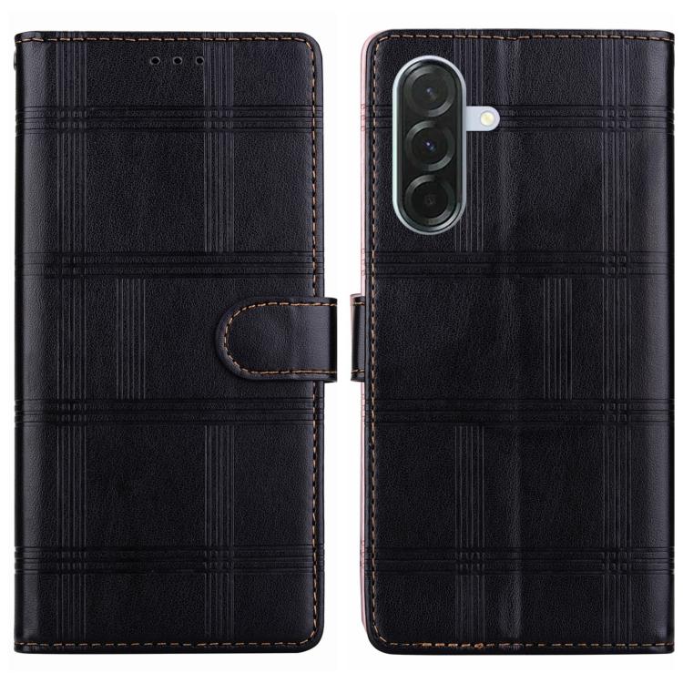 Funda de cuero con relieve a cuadros para Samsung Galaxy A36 5G/A56 5G (negra)