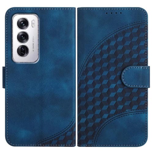 Funda de Cuero con Relieve de Cabeza de Elefante para Teléfono Oppo Reno12 Global Yx0060 con Cordón (Azul Real)