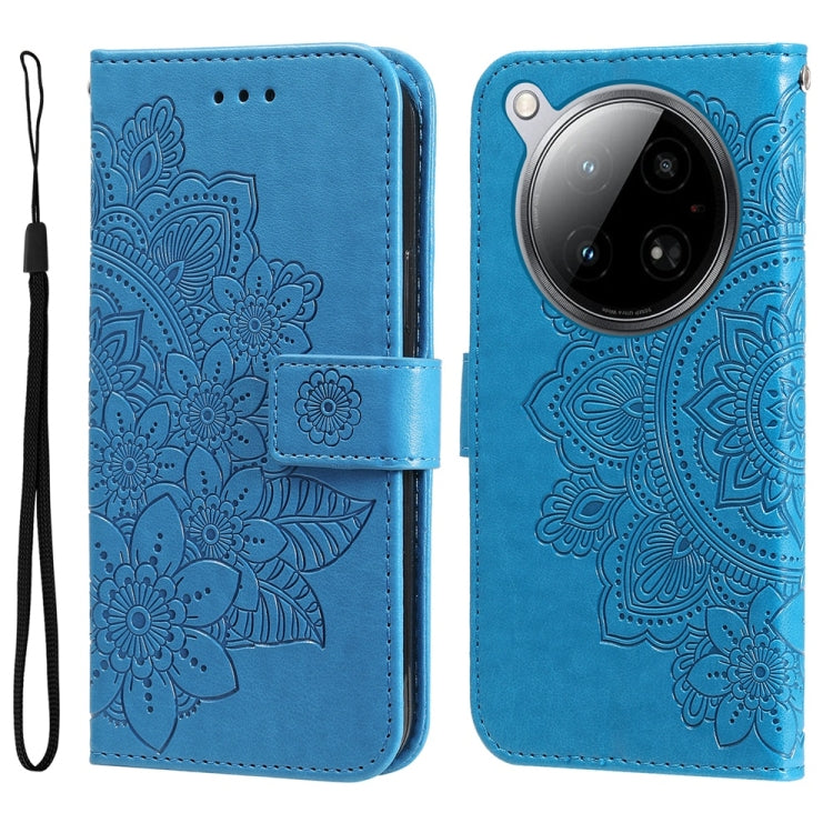 Funda de Cuero con Relieve Flores Siete Pétalos para Infinix Zero 40 4G/5G (Azul)