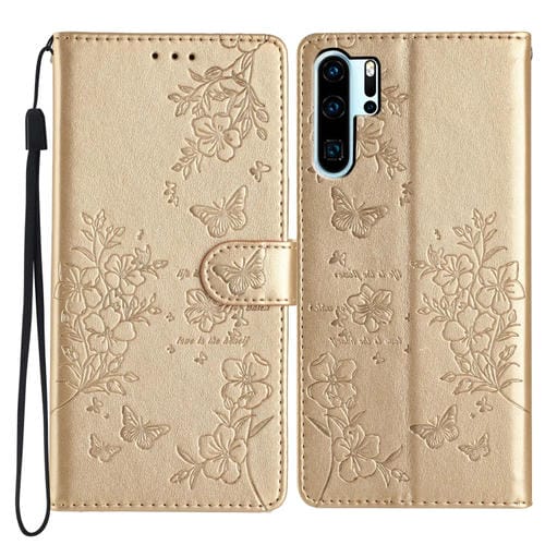 - 1x Funda de Cuero con Relieve Mariposa y Flor para Huawei P30 Pro (Dorada)