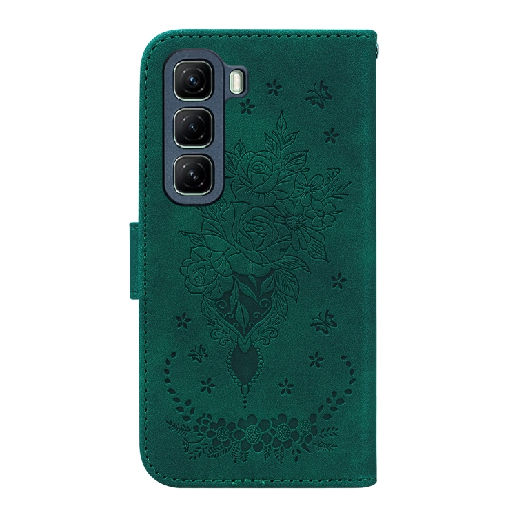 Funda de Cuero con Relieve Mariposa y Rosa para Infinix Hot 50 5G (Verde)