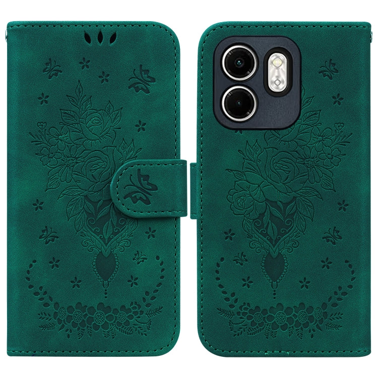 Funda de Cuero con Relieve Mariposa y Rosa para Infinix Hot 50I Smart 9 (Verde)