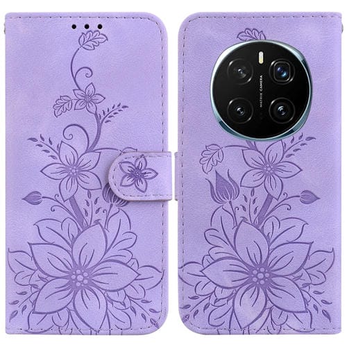 Funda de Cuero con Relieve Lily para Honor Magic7 Pro (Morado)