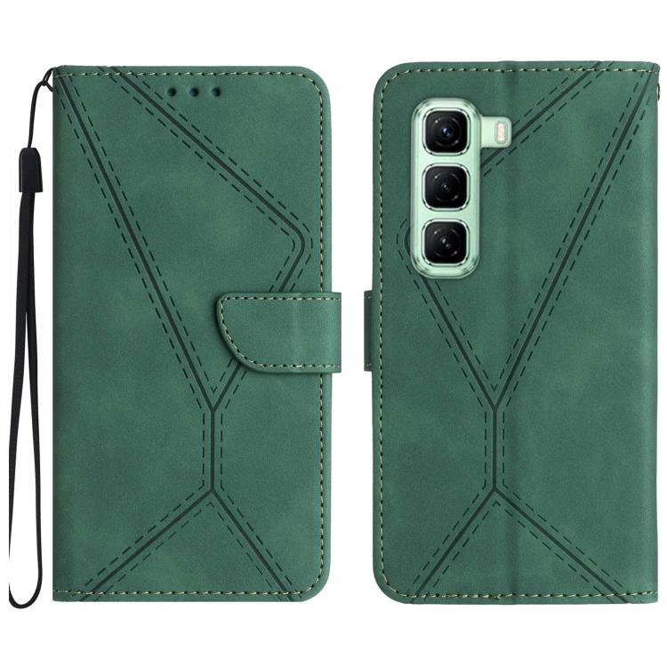 Funda de Cuero con Relieve y Costuras para Infinix Hot 50 Pro+ 4G (Verde)