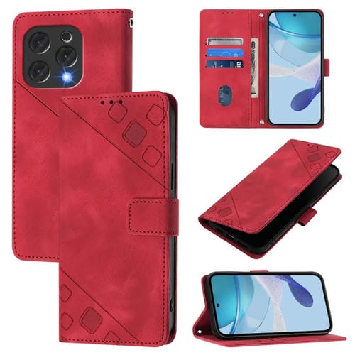 Funda de Cuero con Relieve y Tacto de Piel para Doogee N55 Plus (Roja)