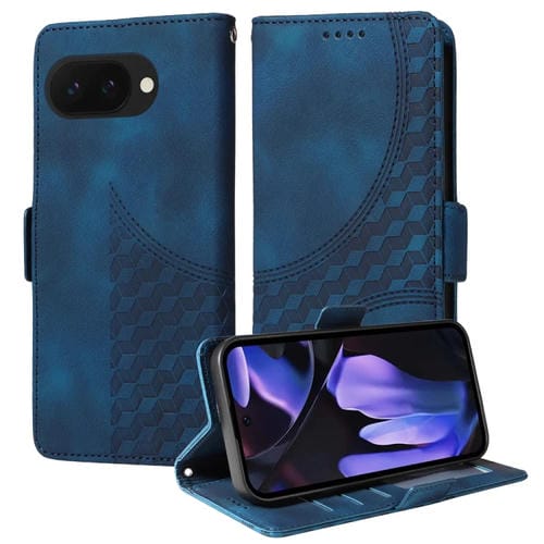 Funda de Cuero con Rombos en Relieve y Estrellas para Google Pixel 9A (Azul)