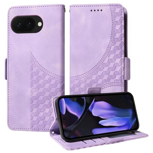 Funda de Cuero con Rombos en Relieve y Estrellas para Google Pixel 9A (Morado)