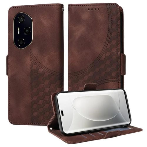 Funda de Cuero Honor 300 Pro con Rombos en Relieve y Estrellas (Marrón)