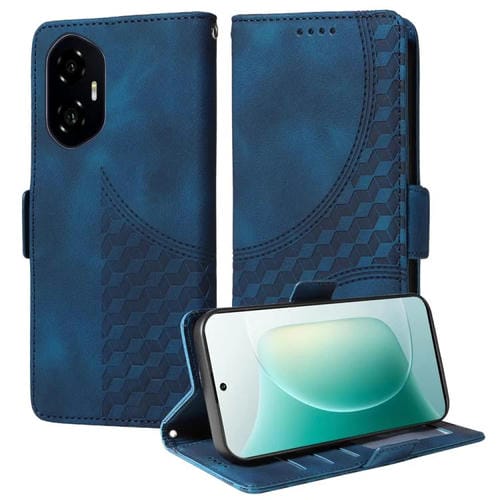 Funda de Cuero con Rombos y Estrellas en Relieve para Teléfono For Honor 300 (Azul)