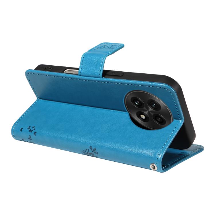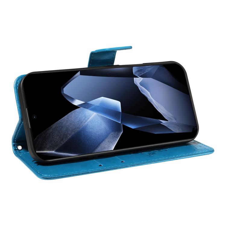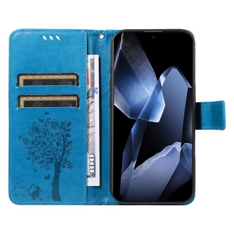 Funda de Cuero con Tapa para OnePlus 13 con Patrón En Relieve Árbol y Gato (Azul)