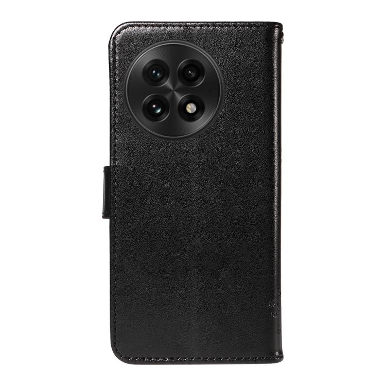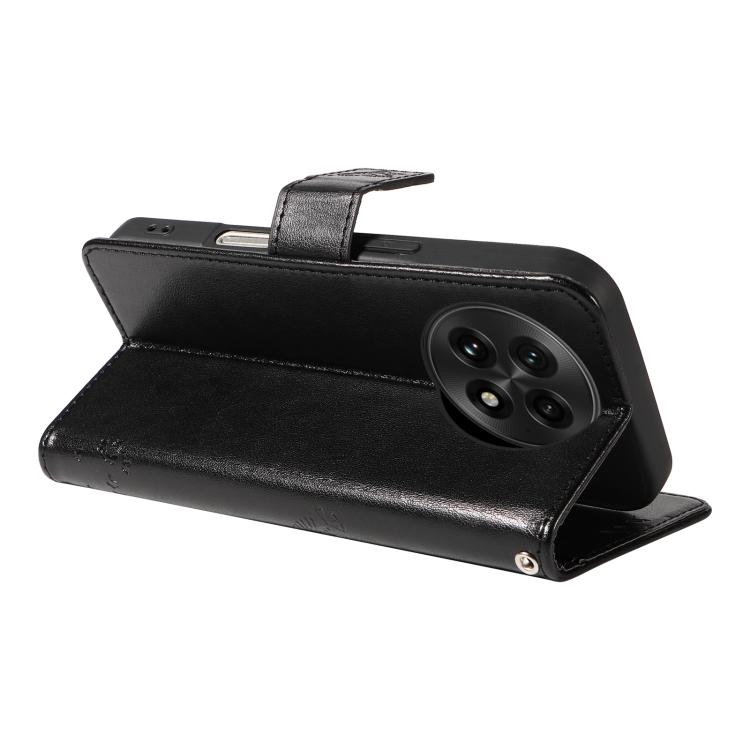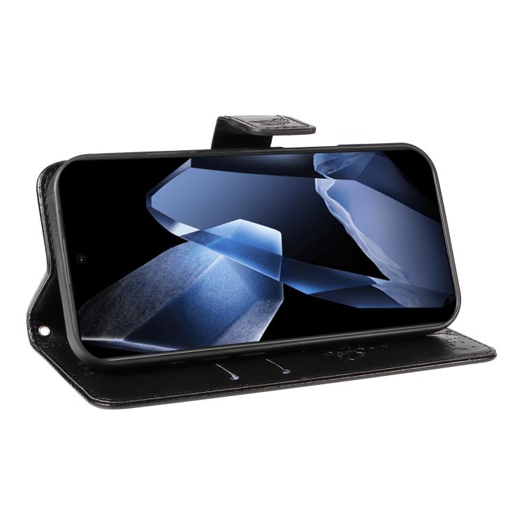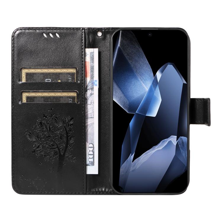 Funda de Cuero con Tapa para OnePlus 13 con Patrón En Relieve de Árbol y Gato (Negra)