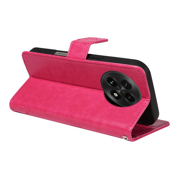 Funda de Cuero con Tapa para OnePlus 13 con Patrón en Relieve Árbol y Gato (Rosa Rojo)
