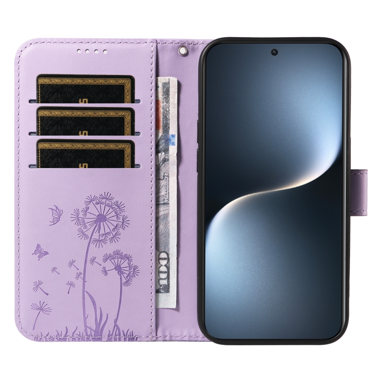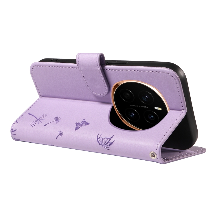 Funda de Cuero con Tapa y Estampado Diente de León para Honor Magic7 5G (Morado)