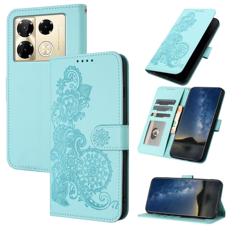 Funda de Cuero con Tapa con Relieve Flor de Datura para Infinix Note 40 Pro 4G/5G (Azul Claro)