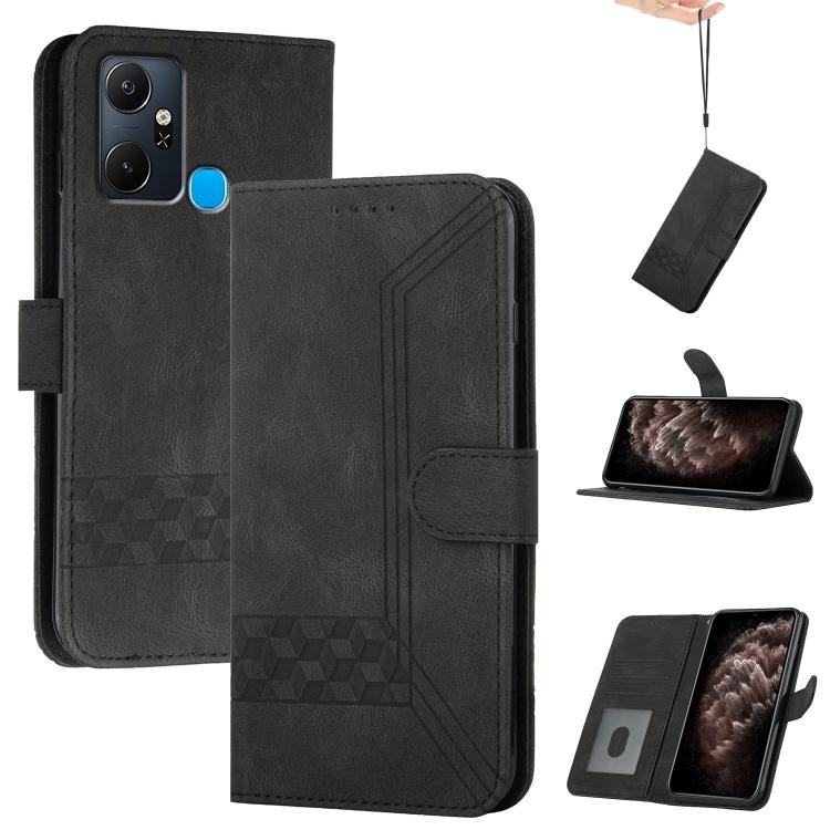 Funda de Cuero con Tapa Cúbica para Infinix Smart 6 Plus (Negro)