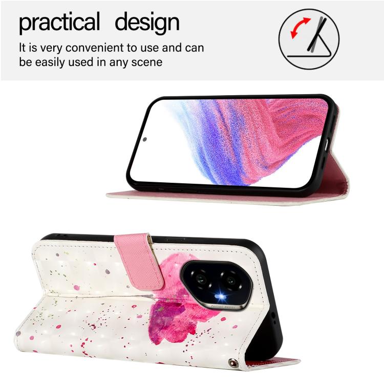Funda de Cuero con Tapa Horizontal y Pintura 3D para Honor 300 (Flor)