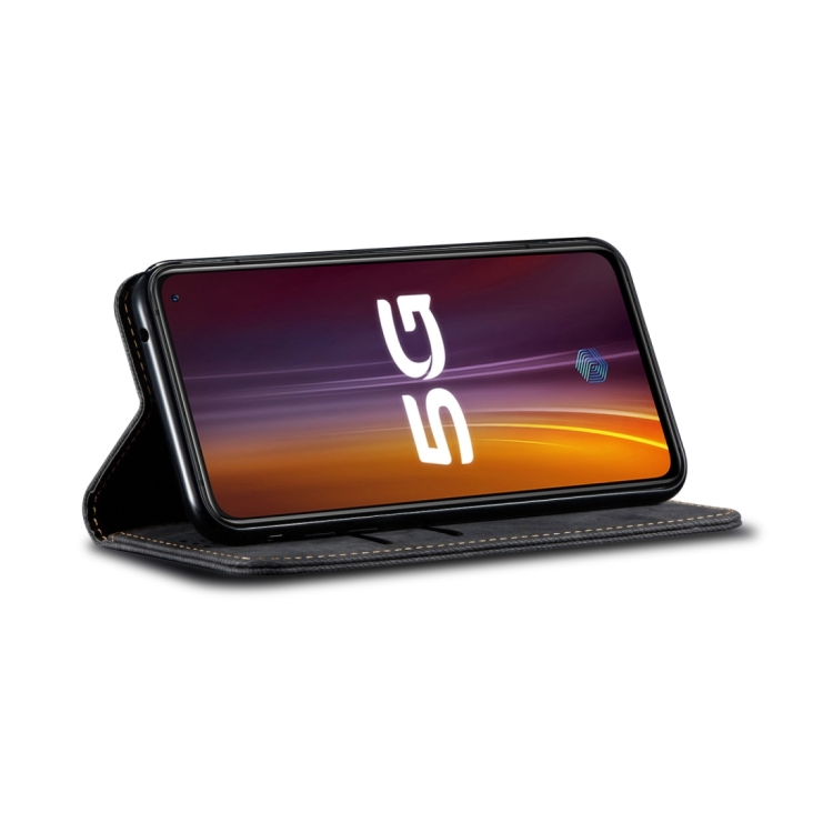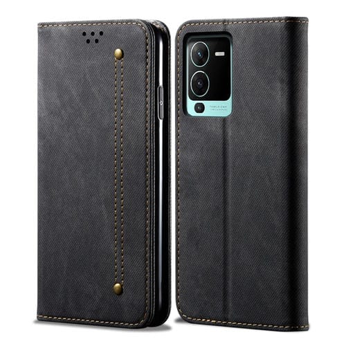 Funda de Cuero con Tapa Horizontal de Estilo Casual con Textura Vaquera para Vivo S15 Pro (Negro)